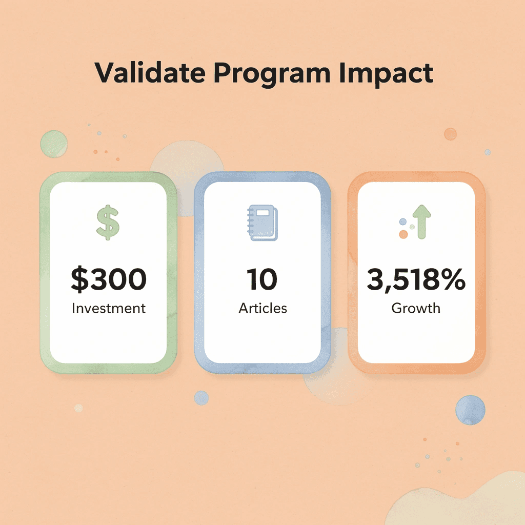 Instead of retainers, you get 10 fully optimized articles using proven methodology. Our track record includes a B2C SaaS company that achieved 3,518% non-branded traffic growth in 21 days, and a B2B SaaS client that scaled traffic by 9,644% within 10 months. This is a real test of strategy, execution, and results, not a sample.